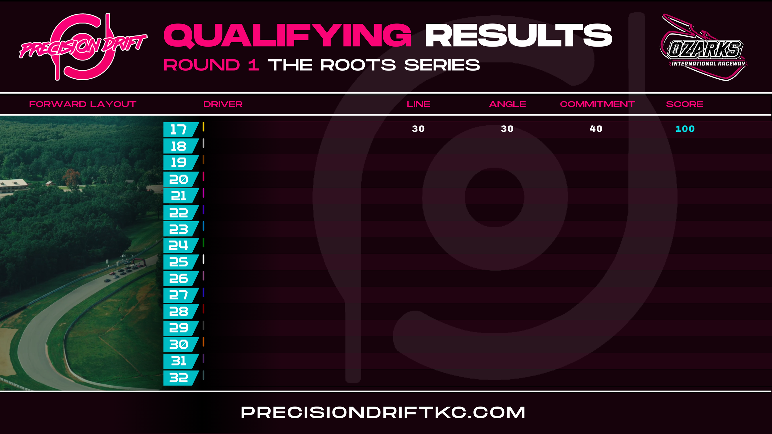 Qualifying scores will be posted on the PrecisionDriftKC website and social media platforms.